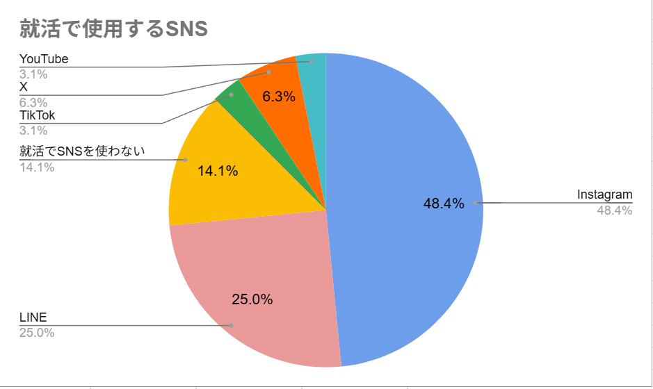 - Instagram:48.4%(約半数の学生が活用)